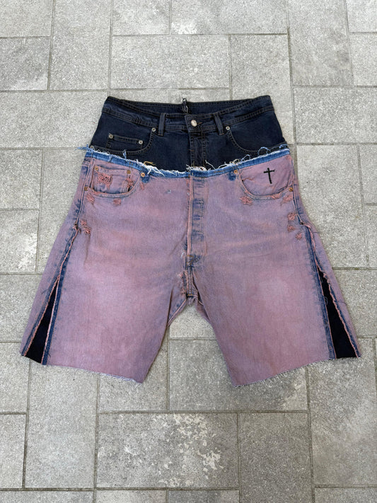 DOUBLE WAIST DISTRESSED “PINK WASH” JORTS