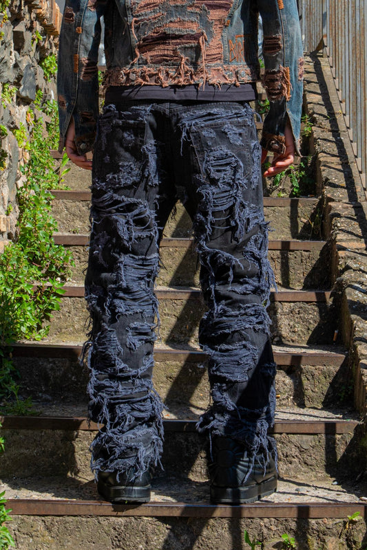 “NERO CREMISI” DISTRESSED BAGGY JEANS